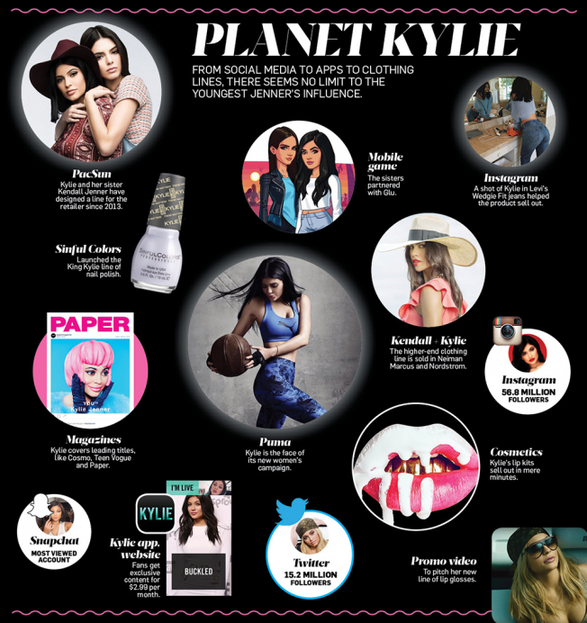 Currently, Kylie Jenner – a well known, social media, star, and icon, has a whopping 135 million followers (and counting)! Her Instagram continues to “take off” each day. Although she is followed by many, she only follows 127 accounts back. Her Instagram platform consists of text, photos, videos, tutorials, links to her sites, and more! She is definitely making the most of this platform! I do not see any room for improvement since she is a top Instagram mogul.